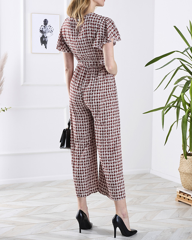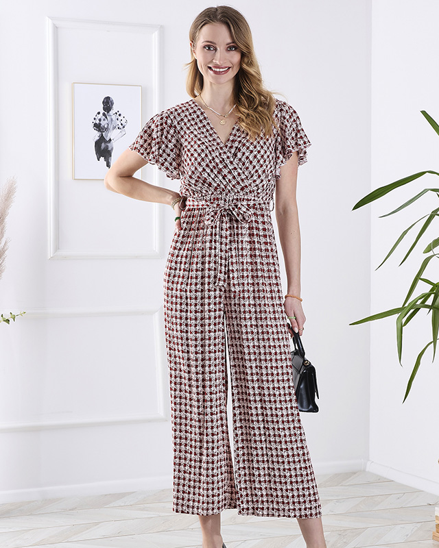 - Combinaison à motifs pour femmes avec manches courtes et encolure enveloppante. Le modèle a des jambes larges et longues, une bande élastique et une reliure à la taille. Un choix idéal pour celles qui apprécient le confort. REMARQUE : Précision des mesure