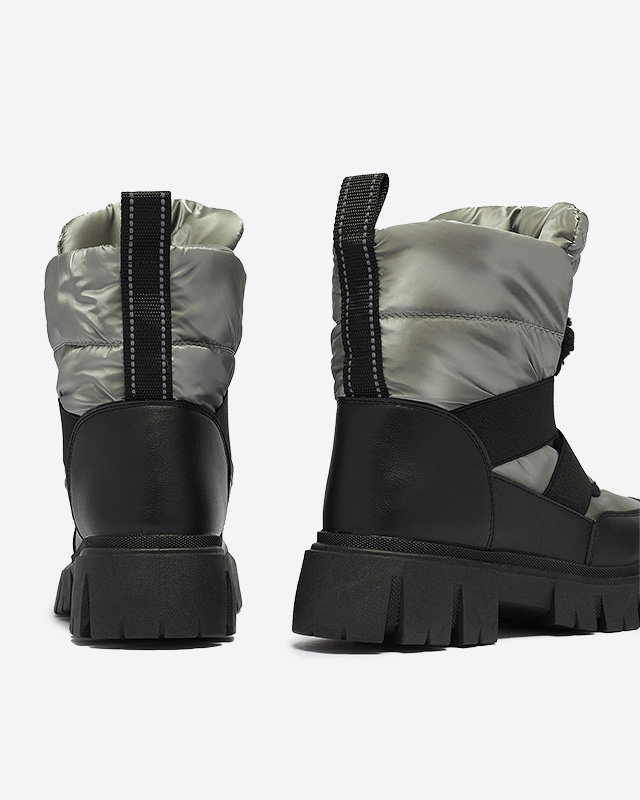 OUTLET Bottes pour femmes a'la bottes de neige sur une semelle plate en noir-gris Ferory- Footwear