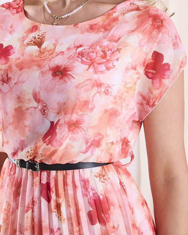 Robe midi pour femme en pils fleuri orange Vêtements