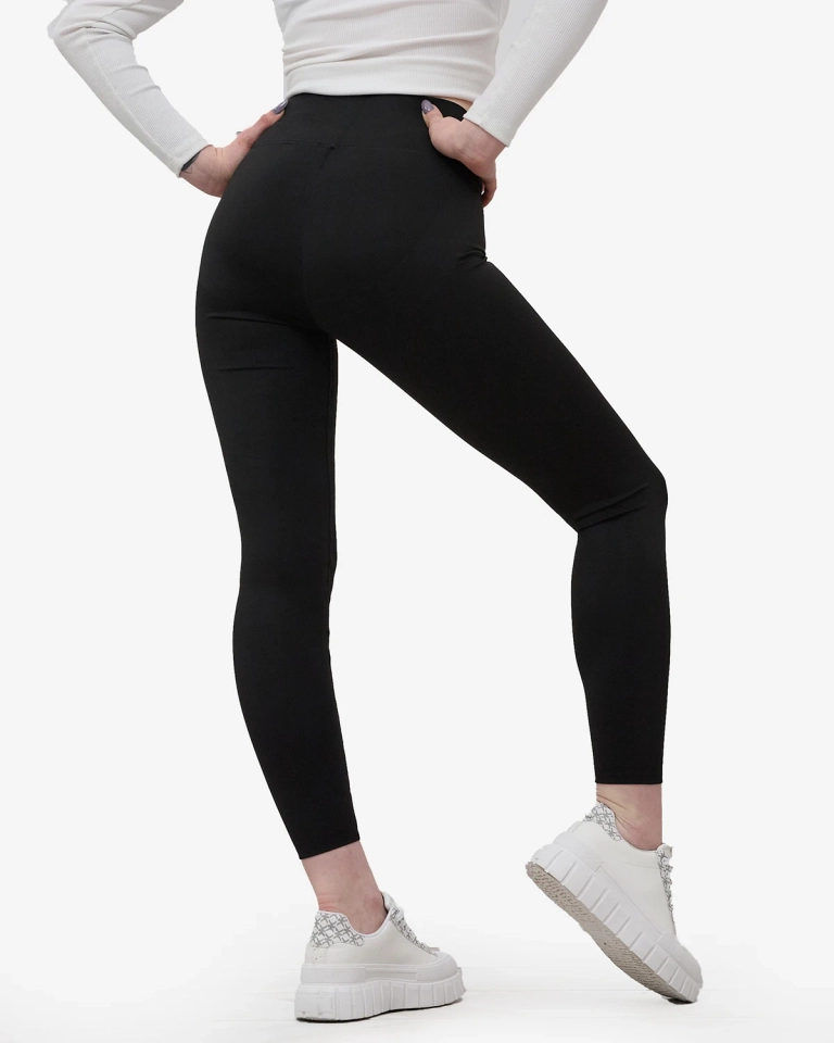 Leggings femme avec large bande élastique à la taille en noir - Vêtements