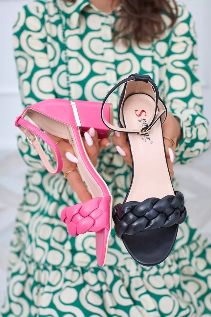 - Sandales à talon intemporelles pour femme en cuir écologique. Elles sont dotées d'une lanière tressée et se ferment par une boucle autour de la cheville. Parfaites pour créer des tenues d'été branchées !