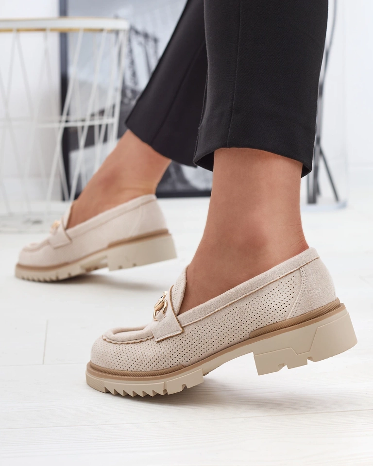 Mocassins ajourés crème pour femme avec chaîne Imerila - Chaussures