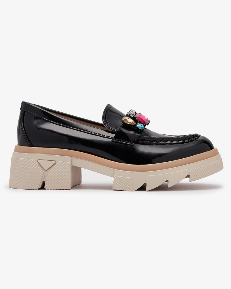 Mocassins noirs laqués avec pierres colorées Sarix - Footwear