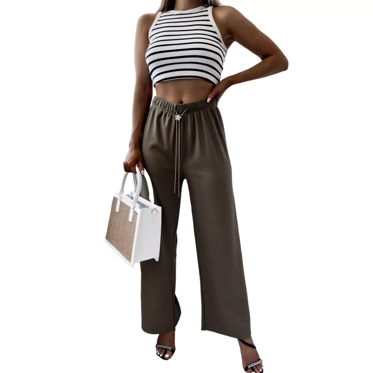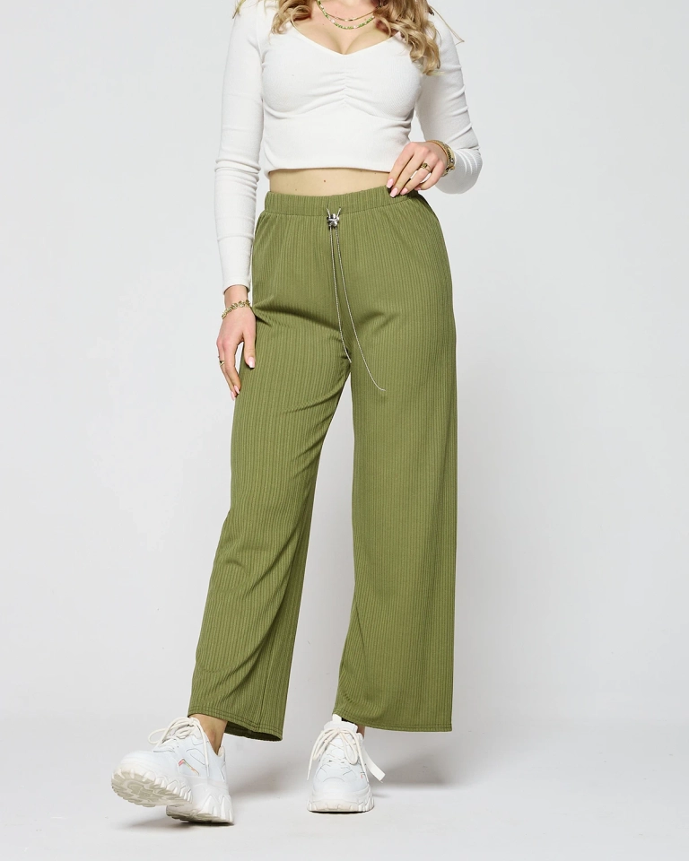 - Pantalon large léger pour femme, en tissu côtelé. Le produit est doté d'une ceinture élastique et d'un pantalon, qui mettront parfaitement en valeur la taille. Incontournable de cette saison ! NOTE : Précision des mesures (+/-) 1 cm.