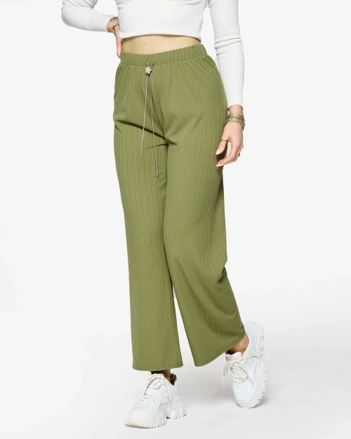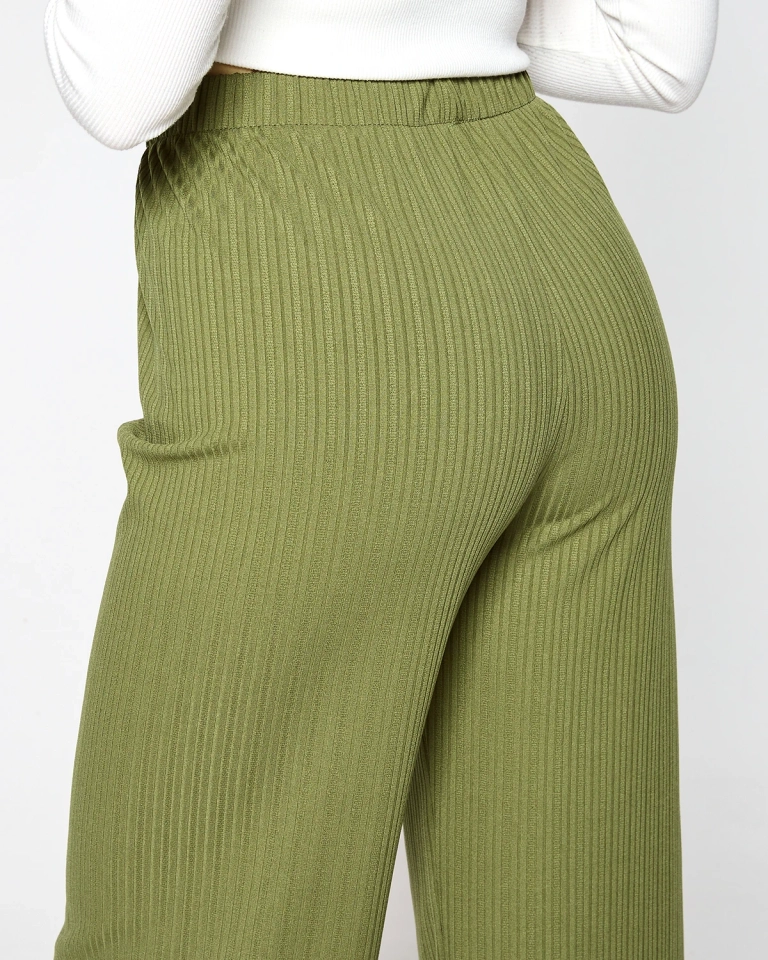 Pantalon large côtelé vert pour femme - Vêtements