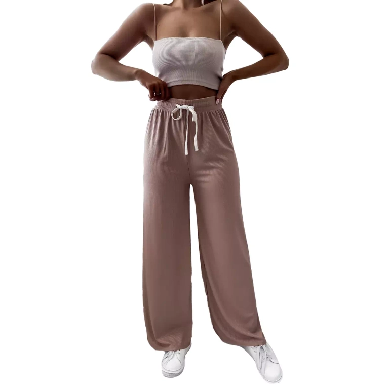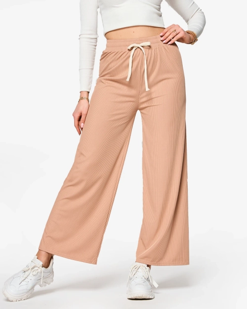 • Pantalon palazzo à plis larges pour femme léger, en tissu plissé. Le produit est doté d'une large ceinture élastique et d'un pantalon noué, qui soulignera parfaitement la taille. Incontournable de cette saison ! NOTE : Précision des mesures (+/-) 1 cm.