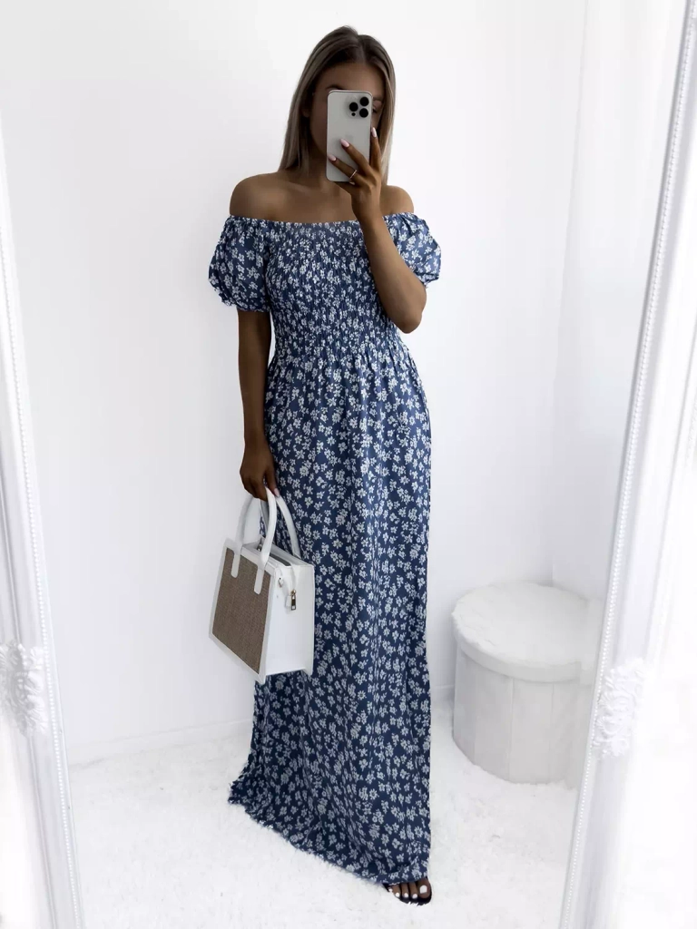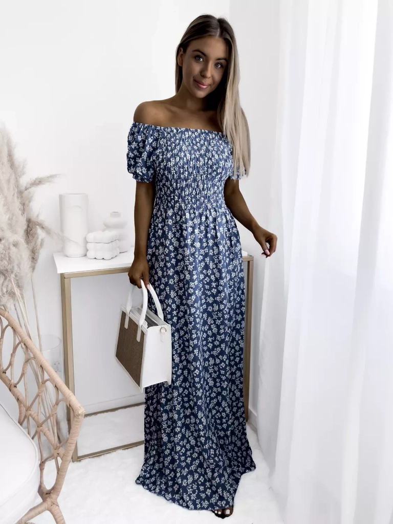 - Superbe robe longue pour femme en tissu léger décoré d'un motif floral. Le modèle à encolure ronde à la hiszpanka, a des manches courtes et des élastiques au niveau de la largeur du buste et de la taille. Incontournable de cette saison ! NOTE : Précision