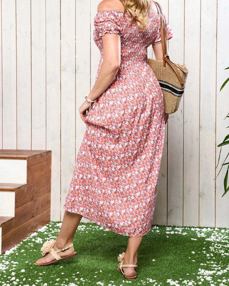 • Robe fantaisie pour femme avec épaules ouvertes à la hiszpana. Le modèle est en tissu floral léger et aéré. Au niveau du buste, une large bande élastique extensible. Le produit de longueur midi a des manches courtes. NOTE : Précision des mesures (+/-) 1 c