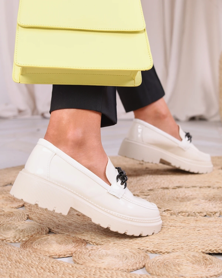 Mocassins laqués pour femme de couleur crème Adolos- Footwear
