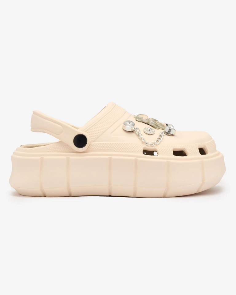 - Magnifiques tongs en caoutchouc pour femme sur une semelle plus épaisse. Dessus ajouré et décoré de zircons. Un choix parfait pour la maison, le jardin ainsi que pour les vacances !