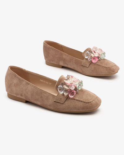 OUTLET Royalfashion Mocassins pour femmes marron clair avec cristaux colorés Setmika