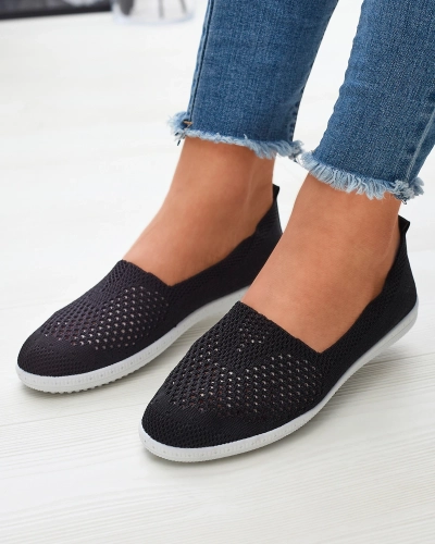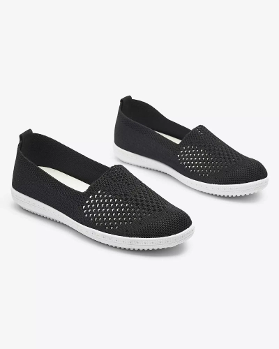 OUTLET Baskets à enfiler en tissu noir ajouré et semelle blanche Sadola - Chaussures