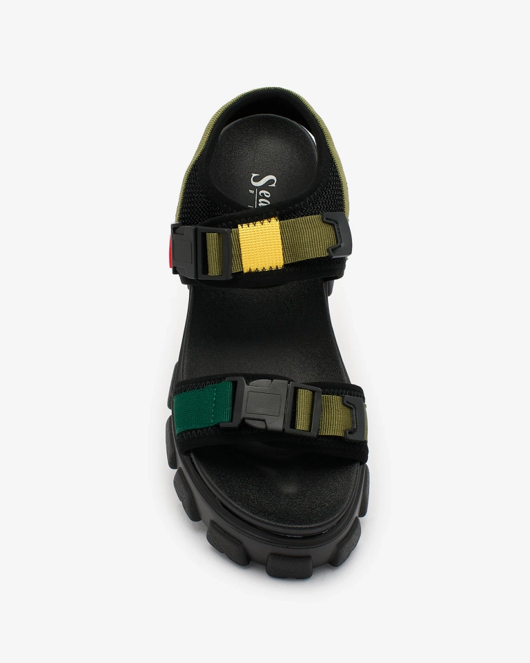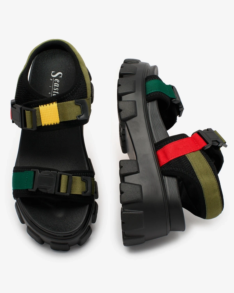 Royalfashion Sandales pour femmes vertes et noires sur une semelle solide Rodeksi