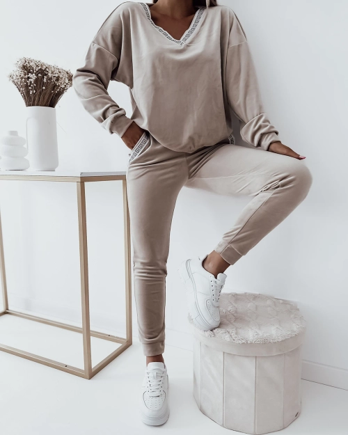 Royalfashion Beige Women's Sports Set with Zirconia