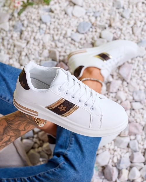 - Chaussures de sport pour femme avec ancre cachée en cuir écologique et semelle intérieure en tissu. La tige est décorée d'un insert imprimé, modèle à lacets. Une combinaison unique de look sportif et d'élégance. Note : le produit présente des décoloration