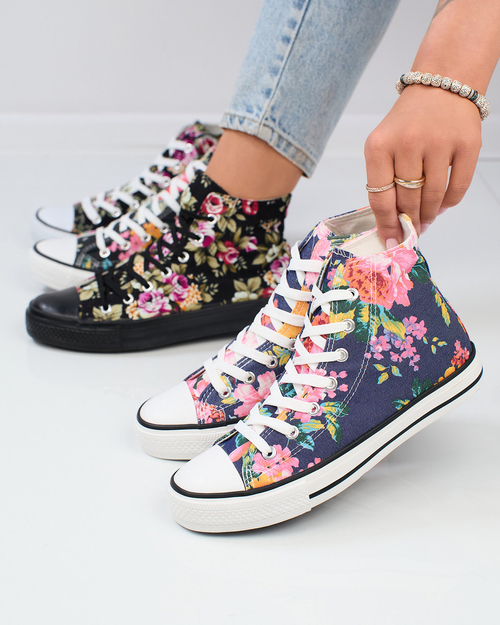 Royalfashion Baskets montantes bleu marine pour femme avec imprimé floral coloré Fahenna