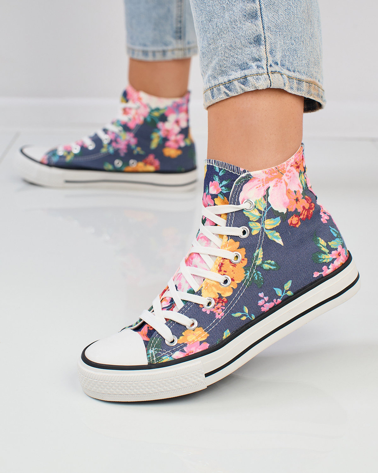 • Baskets hautes pour femme en tissu sur une semelle en caoutchouc. À lacets, elles offrent un ajustement parfait. Décorées d'un imprimé floral, elles apportent charme et caractère estival. Parfaites pour le style de tous les jours !