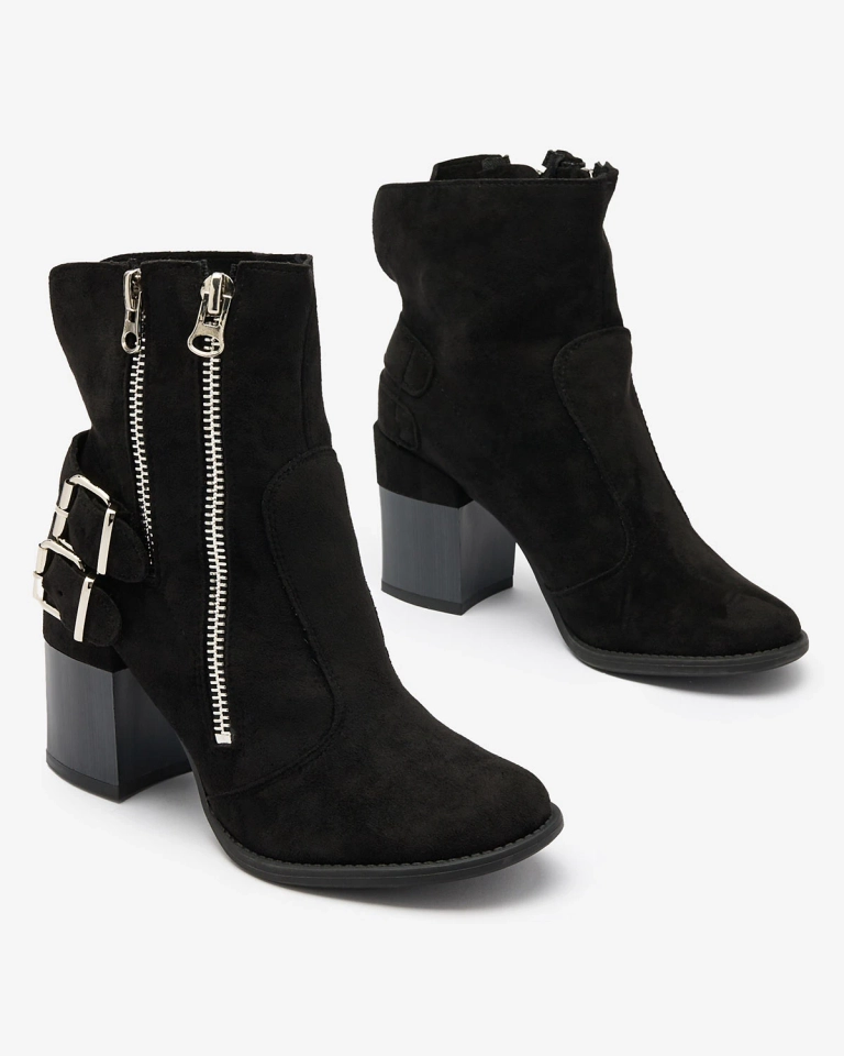 - Bottes élégantes pour femme sur un montant, tige décorée de boucles et réalisée en éco-suède, semelle intérieure en tissu. Modèle fermé par une fermeture éclair à l'intérieur. FEIRRGO BOTTES POUR FEMMES NON ÉTROITES