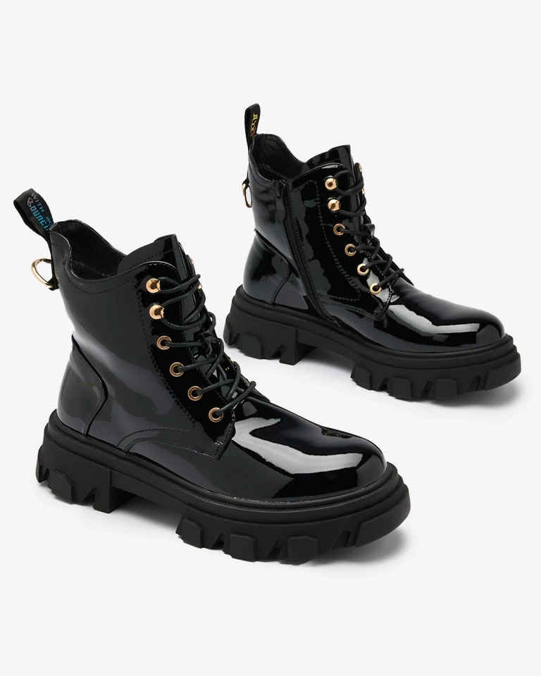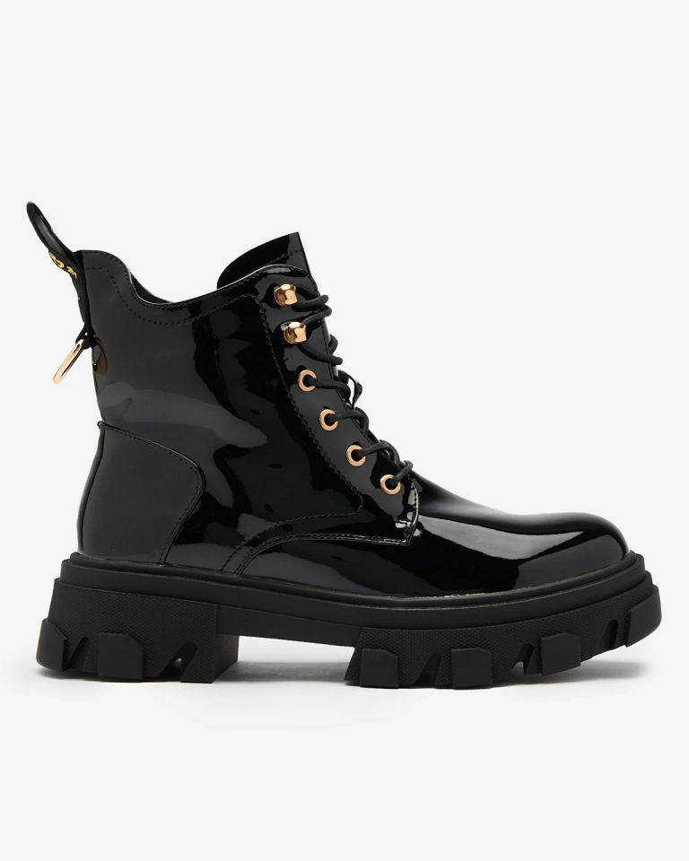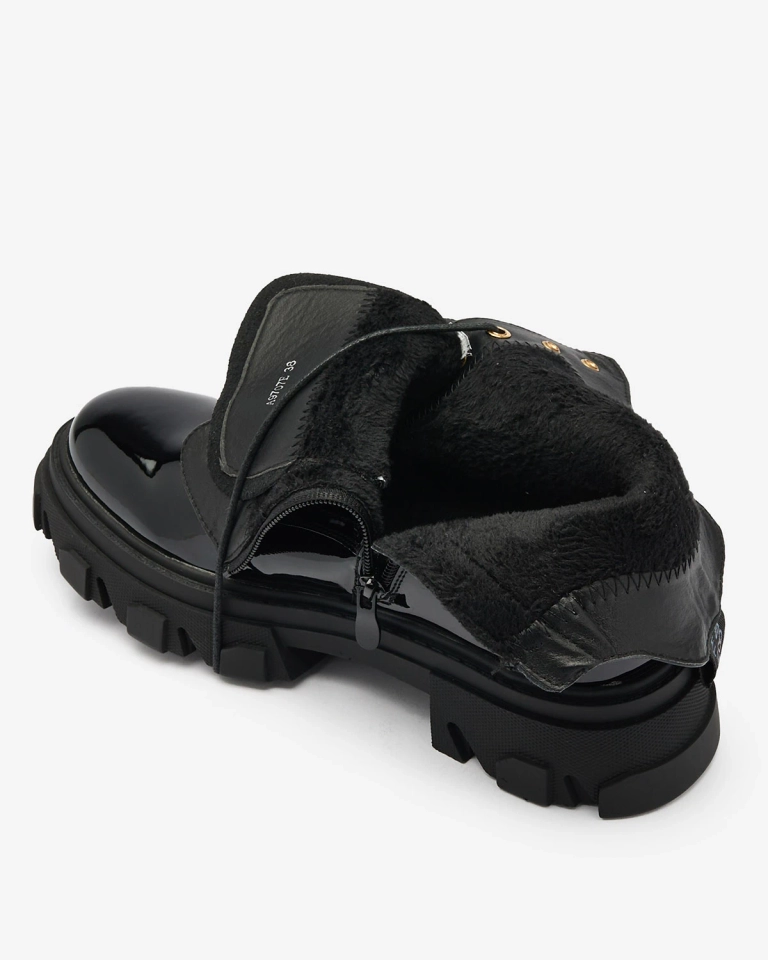 - Bottes intemporelles pour femmes à la manière des trappeurs. La tige à lacets est en cuir écologique laqué, le milieu est isolé avec de la fourrure douce. Superbe complément à vos tenues décontractées ! BOTTES DE TRAPPEUR ISOLÉES POUR FEMMES SETOGIA