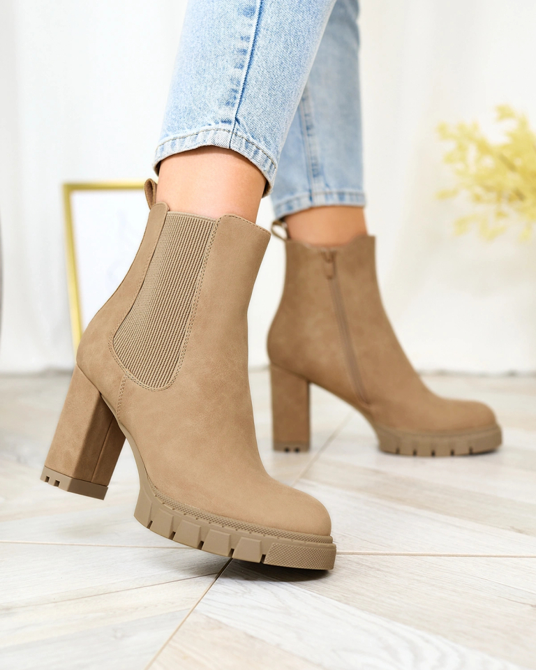 • Bottes à talons hauts exceptionnelles pour femmes, légèrement isolées. La tige est en cuir écologique. L'intérieur est garni de fourrure. La chaussure est munie d'une fermeture à glissière et d'un élastique sur le côté. Superbe complément à vos tenues d'a