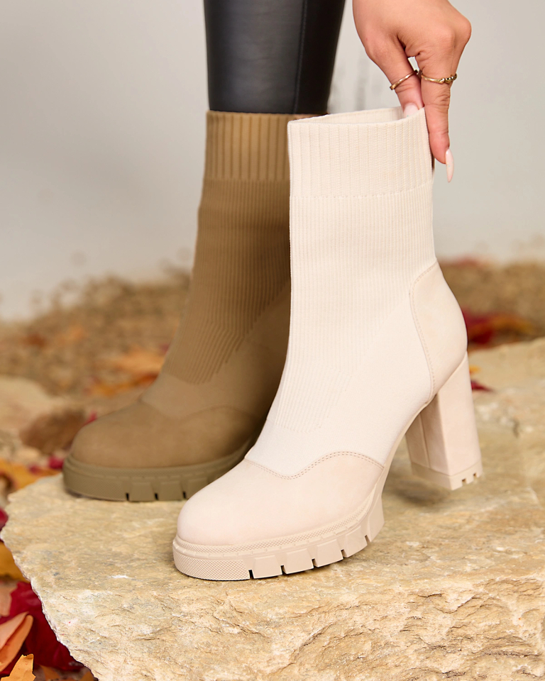 Royalfashion Cream Bottines Flexi à talon supérieur pour femmes