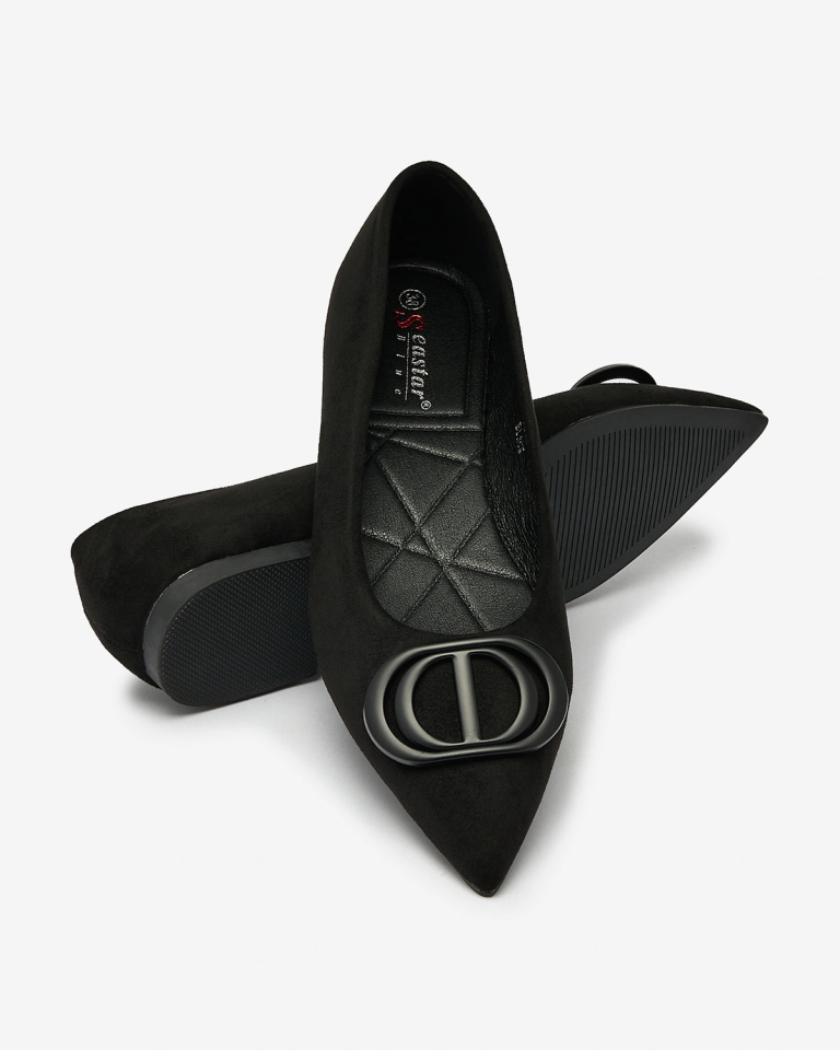 - Ballerines à talon plat pour femme entièrement en cuir suédé biologique. Nez pointu et décoré d'une boucle en métal. Superbe complément à vos tenues décontractées !