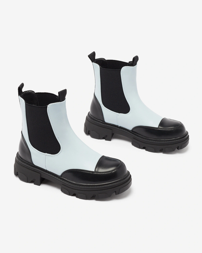 - Ces bottes uniques pour femmes ajouteront du charme à tous vos styles d'automne ! Le modèle est en cuir écologique et la semelle intérieure est en tissu. Les chaussures s'enfilent et sont dotées d'inserts élastiques sur les côtés. La combinaison de couleu