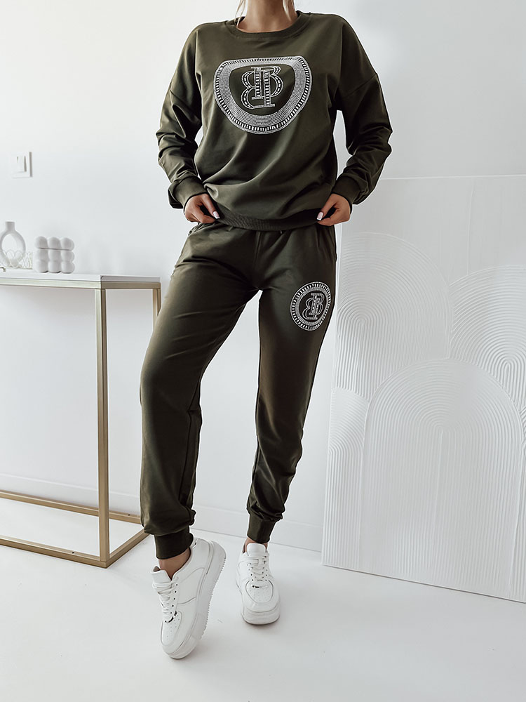 Royalfashion Ensemble de sweatshirt pour femme vert foncé avec zircons