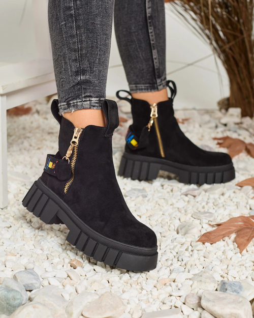 - Bottes élégantes sur une semelle plus épaisse en cuir éco-suède. Nez arrondi, centre garni de fourrure. Fermeture à glissière. Le modèle est doté d'une fermeture éclair décorative et d'une sangle amovible. Des chaussures idéales pour des tenues d'automne