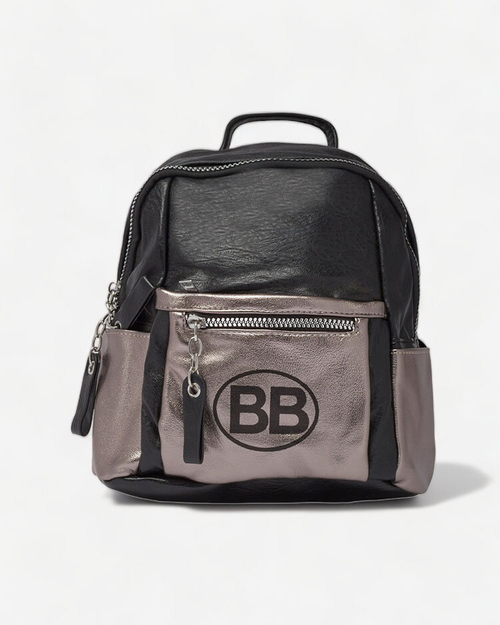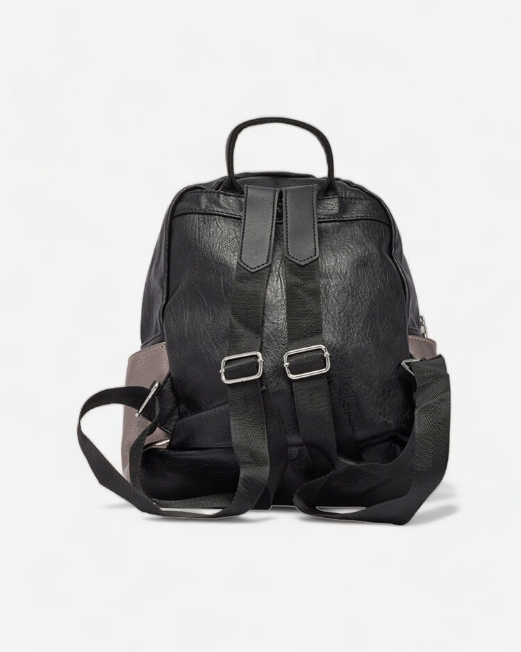 Royalfashion Petit sac à dos en éco-cuir pour femme noir avec pochette graphite