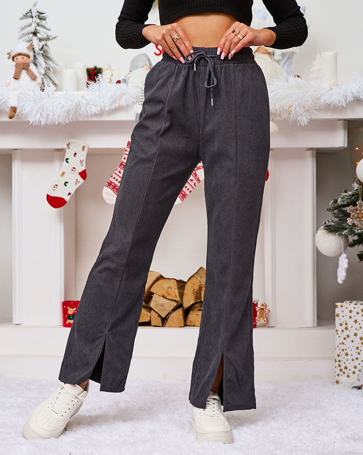 Royalfashion Pantalon en velours côtelé gris foncé pour femme