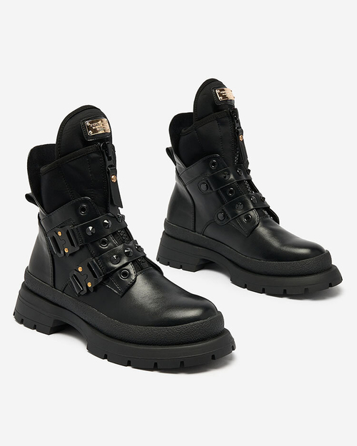 • Bottes bagger à semelle plus épaisse, fabriquées selon les règles de l'art. La tige est en cuir écologique et la semelle intérieure est en tissu. Modèle fermé par une fermeture à glissière sur le devant. Chaussures décorées de boucles cloutées. Idéal pour