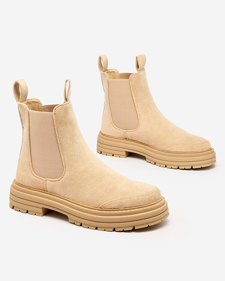 Royalfashion Bottes pour femme beige avec lanière décorative Loffdo