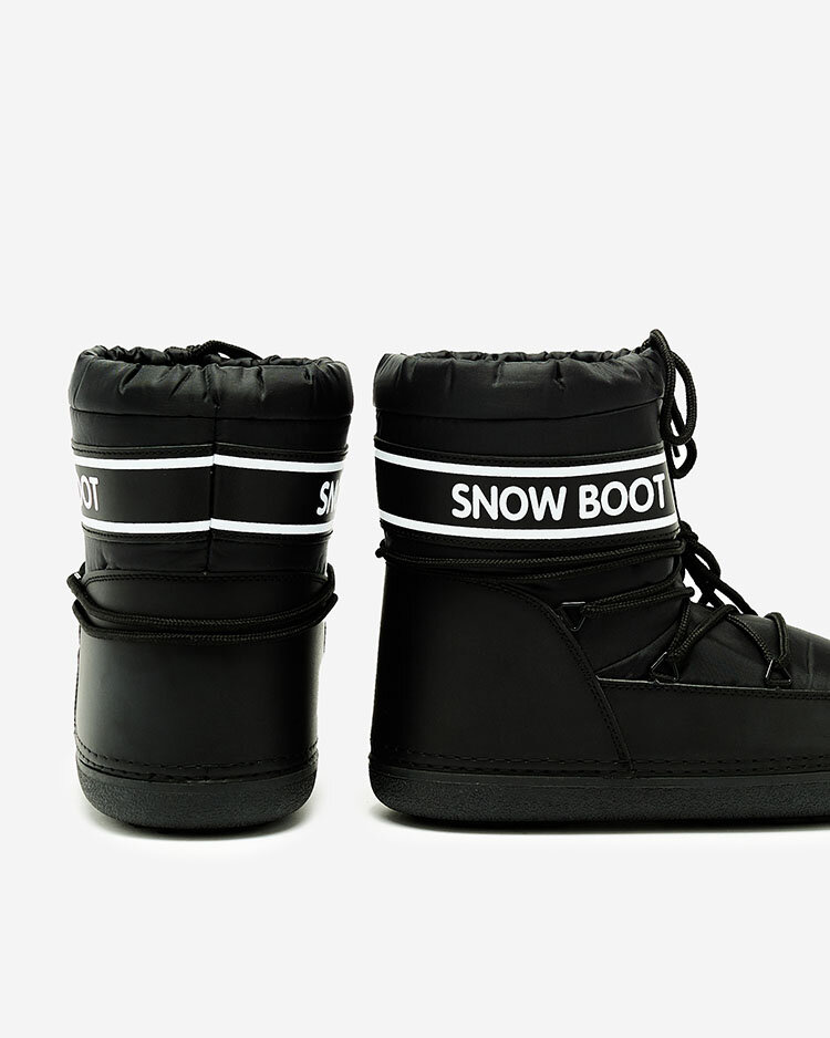 • Bottes de neige pour femmes avec un revers en combinaison de cuir écologique et de matériau en tissu matelassé. Doublé de tissu à l'intérieur, chaussures à enfiler et à lacets, avec un revers.