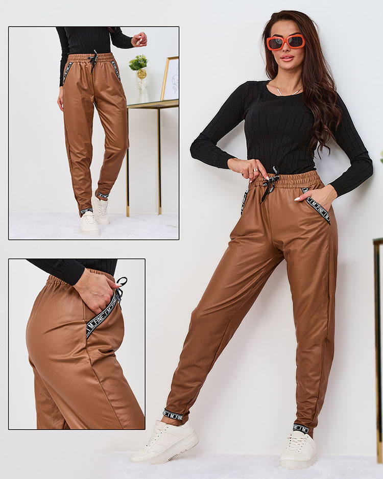 • Pantalon ample pour femme, en cuir écologique. Le modèle a une taille élastique extensible, un pantalon et 2 poches à glissière. Un hit de cette saison ! NOTE : Précision des mesures (+/-) 1 cm.