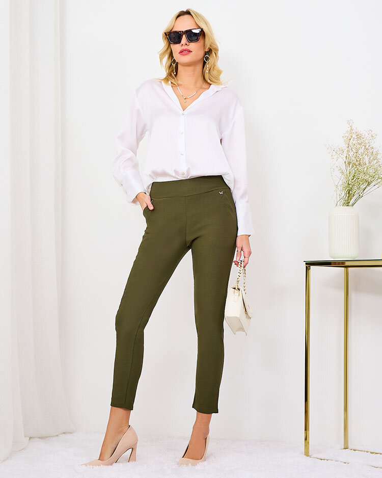 - Les leggings en éco-cuir a'la bells sont une combinaison de style et de confort. Le modèle avec une ceinture élastique, s'adapte parfaitement à la silhouette, offrant confort et liberté de mouvement. Ce legging ajoute une touche de mode à votre style.