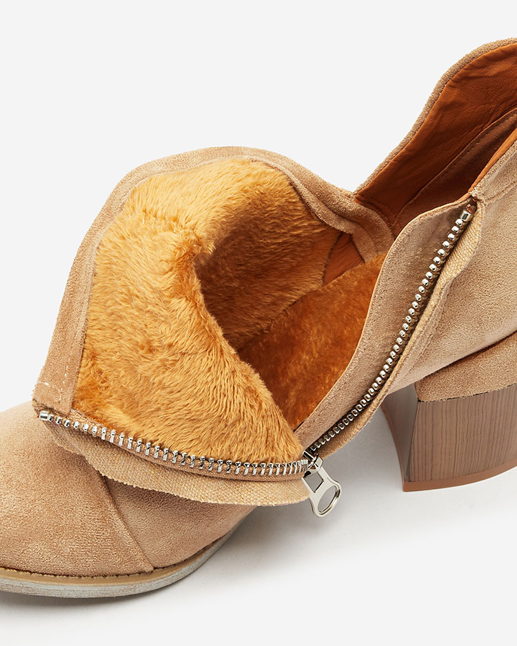 - Ces bottes élégantes en suédine écologique pour femme sont parfaites pour les jours les plus froids. La tige est zippée, avec de la fourrure à l'intérieur. Modèle à tige plus haute et à nez rond. Superbe complément à vos tenues décontractées !