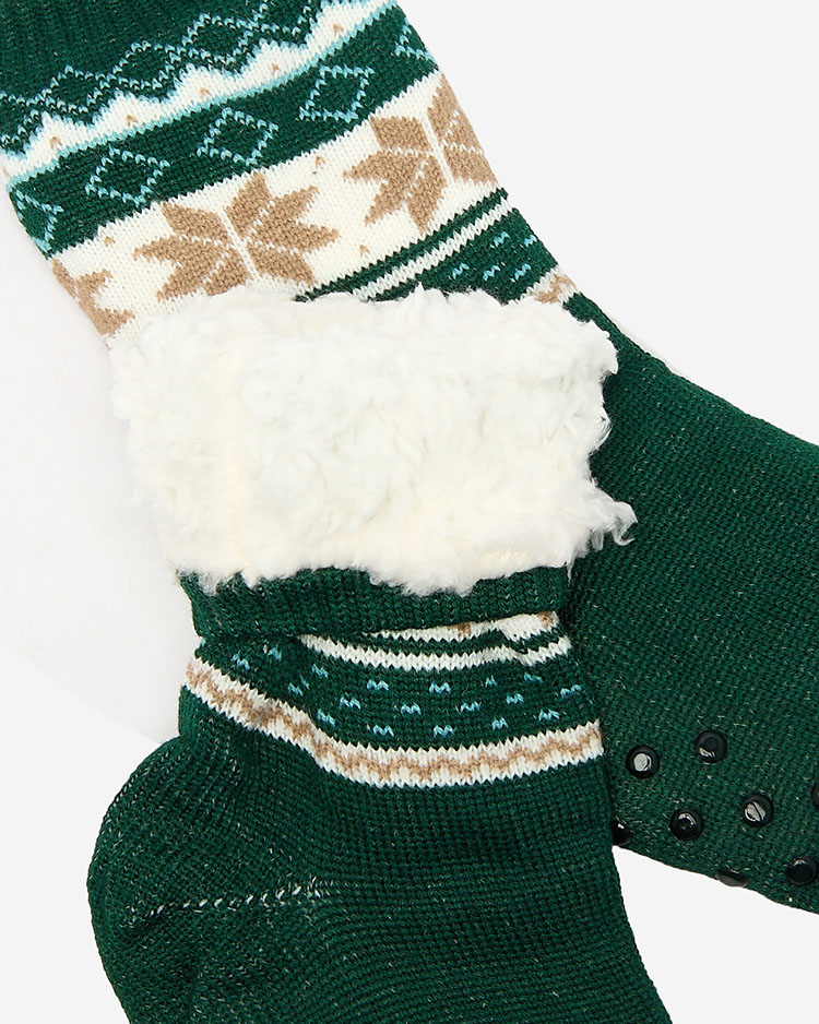 - Chaussettes épaisses pour homme, isolées à l'intérieur avec de la peau de mouton chaude. Le modèle est fini avec un motif de Noël et un fond antidérapant. Les chaussettes seront parfaites pour les jours plus froids !