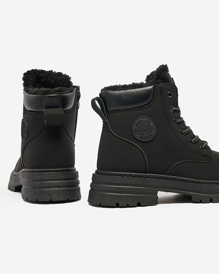 - Trappeurs femme chauffés, en éco-nubuck. Tige nouée, intérieur isolé sous forme de fourrure. Des chaussures en béton pour les intempéries !