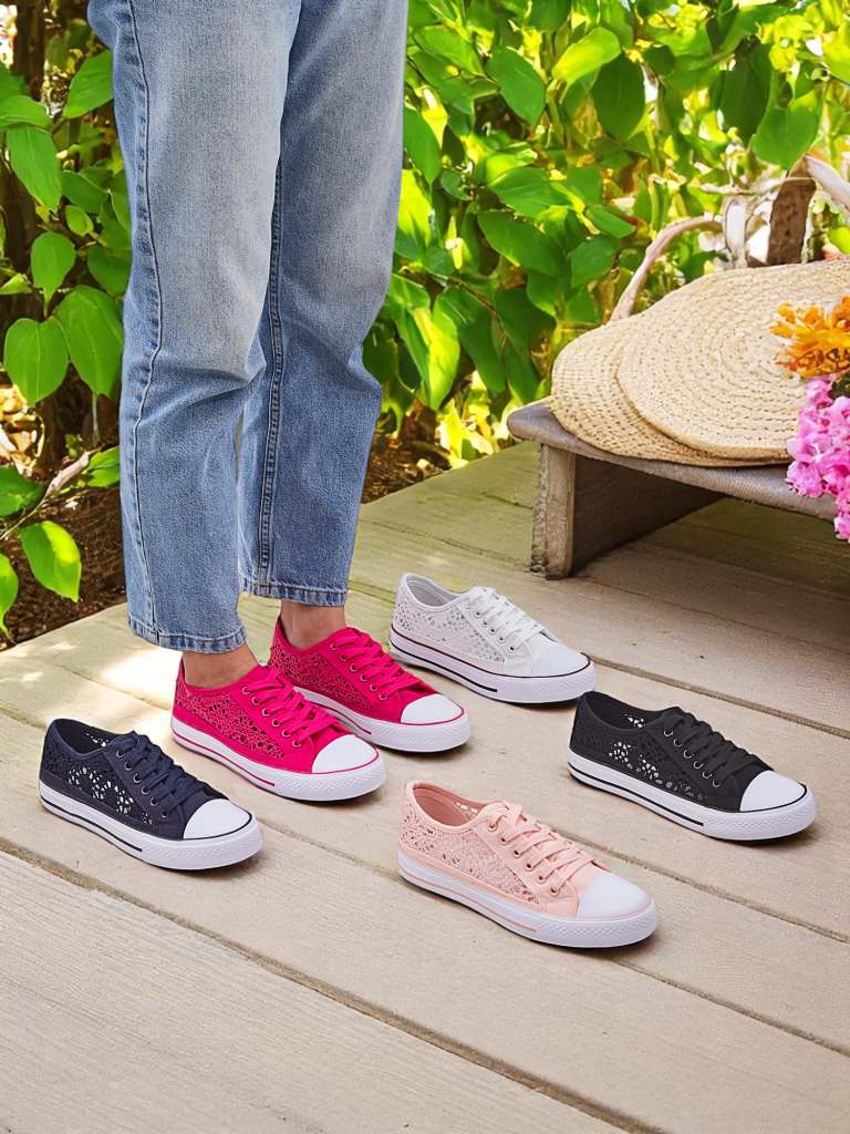 Les baskets pour femmes Callista en fuchsia sont une proposition pour les amoureux du confort et du style en un. Leur tige est faite de tissu de coton de haute qualité avec un tissage ajouré, qui non seulement est extrêmement féminin, mais garantit également une excellente respirabilité même pendant les jours les plus chauds. Les éléments finis à la main et le processus de production avancé assurent durabilité et confort à chaque pas. La semelle intérieure est également faite de tissu doux, assurant le confort tout au long de la journée, et la semelle plate de 2,5 cm de haut en matériau flexible s'adapte aux mouvements du pied, absorbe les chocs et est parfaite pour les longues promenades.Les avantages de porter ces chaussures ne sont pas seulement le confort et la légèreté, mais aussi la mise en valeur de votre propre style dans les styles quotidiens et semi-formels. Le matériau permet aux pieds de respirer et minimise le risque de surchauffe ou d'abrasion même lors d'une utilisation intensive. Le fuchsia à la mode ravive chaque style et s'intègre parfaitement dans les tendances de couleurs actuelles de la saison printemps-été.Trois propositions de style :1. Optez pour un look décontracté : combinez les baskets Callista avec vos jeans mom-fit préférés et un t-shirt blanc, en ajoutant une veste en jean légère - parfait pour sortir avec des amis.2. Style sportif : optez pour des leggings et un sweat-shirt plus long de couleur pastel - confortable pour une promenade ou une exploration active de la ville.3. Version girly : portez une robe midi fluide à fleurs ou une jupe pastel avec un débardeur. L'effet de légèreté sera souligné par les baskets fuchsia.L'entretien des chaussures consiste à éliminer régulièrement la saleté avec une brosse douce ou un chiffon humide. Si nécessaire, vous pouvez laver délicatement la saleté à la main dans de l'eau tiède avec l'ajout de détergents doux pour les tissus. Sécher à température ambiante, à l'abri de la lumière directe du soleil et des sources de chaleur, ce qui assurera le maintien de la forme et de l'intensité de la couleur.Les baskets Callista s'inscrivent parfaitement dans la tendance de la mode des matériaux naturels et des couleurs expressives. Les éléments ajourés et la couleur énergique sont un must-have pour la saison printemps-été, une période où le confort et la respirabilité sont essentiels.
