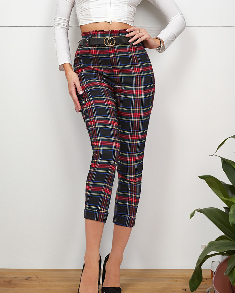 • Pantalon élégant pour femme en tissu léger à motif à carreaux. Le modèle a une ceinture élastique et 2 poches. En outre, une ceinture est incluse. Confortable et pratique ! NOTE : Précision des mesures (+/-) 1 cm. Dimensions mesurées à plat.