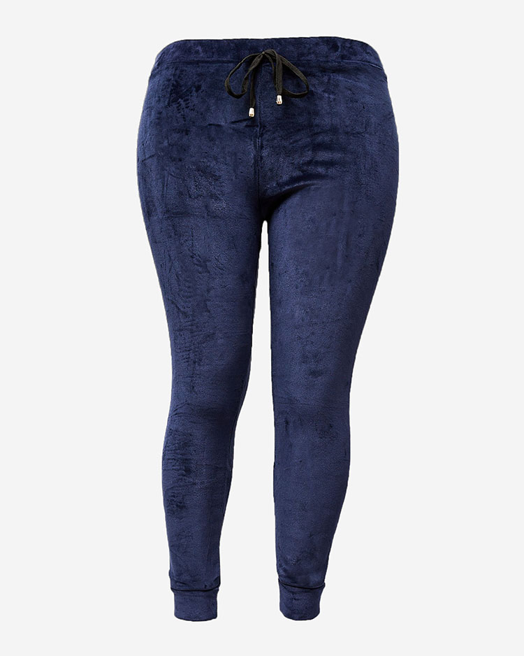 • Pantalon de survêtement tube isolé en tissu doux et léger à la manière du velours. L'élastique à la taille permet d'ajuster parfaitement le pantalon. En outre, l'embellissement des bandes latérales.