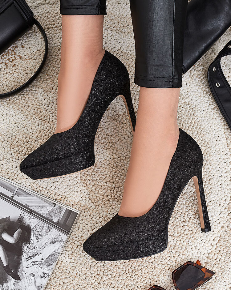 - Escarpins à tige sensationnels pour femme, avec tige en cuir écologique et paillettes. La semelle intérieure est doublée de cuir écologique, le modèle sur tige plus haut avec un nez pointu. Parfait pour les robes courtes !