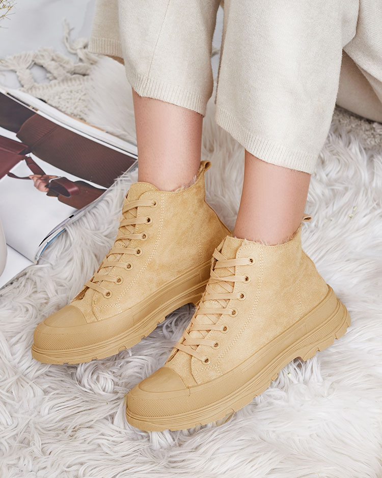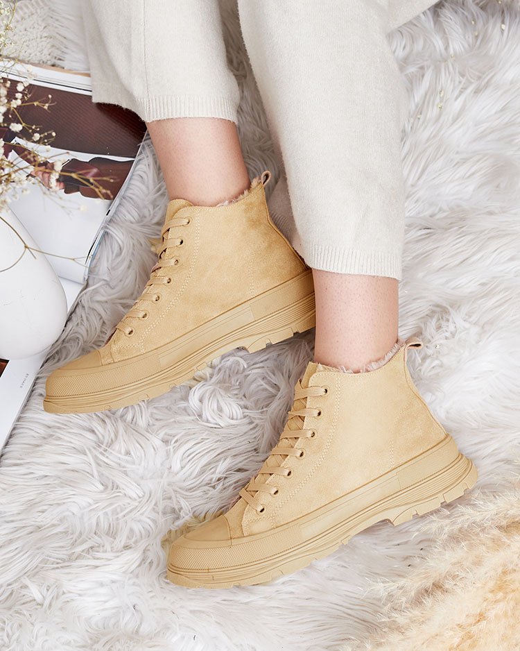 - Chaussures de sport hautes uniques pour femme a'la sneakers. La tige à lacets est en cuir suédé écologique, le milieu est isolé avec de la fourrure douce. Solidement fabriquées et très confortables grâce à la semelle en caoutchouc souple !