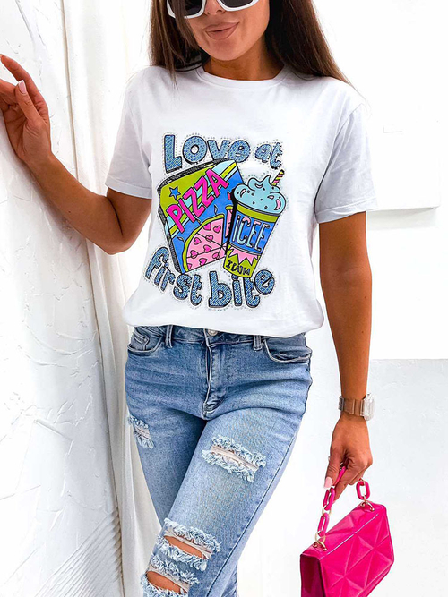 - T-shirt imprimé décontracté à manches courtes pour femme. Fabriqué en coton. Base parfaite pour de nombreux looks de tous les jours ! NOTE : Précision des mesures (+/-) 1 cm. Dimensions mesurées à plat.