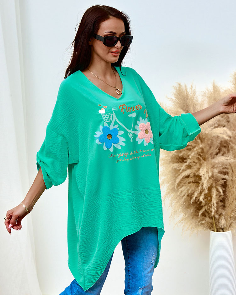 - Blouse imprimée pour femme Longer en matière douce. L'encolure effrontée et l'ourlet asymétrique ajoutent une touche sophistiquée. Parfait pour les tenues de tous les jours !
