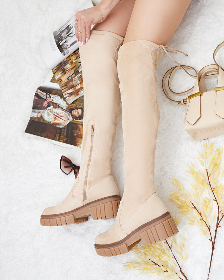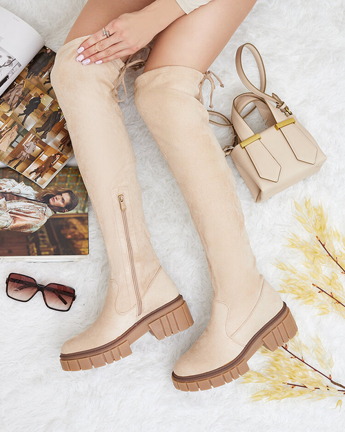 • Bottes longues pour femmes sur une semelle plus épaisse, tige en éco-suède. Le modèle a une semelle intérieure en fourrure. Les bottes sont zippées jusqu'au milieu du mollet et ont une trépointe. Une base parfaite pour de nombreuses tenues d'hiver !