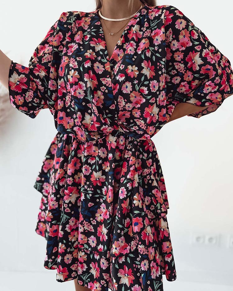 - Magnifique mini robe femme en tissu léger à motif original. A la hauteur de la taille se trouve un élastique extensible. Le produit a des manches courtes, une encolure en cœur et un ourlet large.