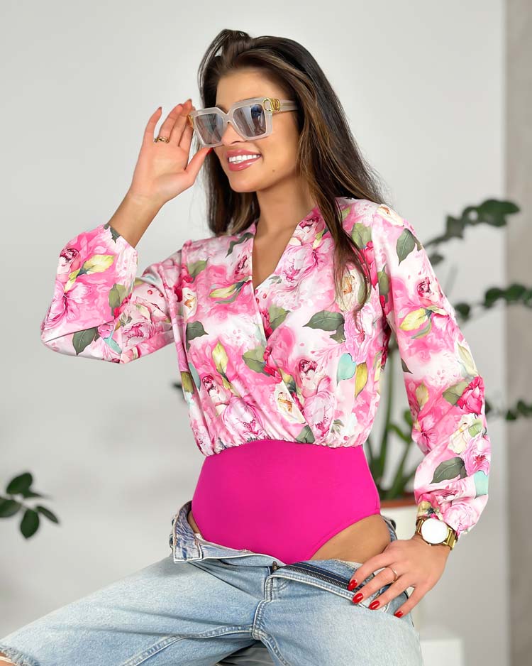 • Body imprimé rehaussant la silhouette en matière agréable. Modèle avec encolure en cœur et manches longues. Fermeture auto-agrippante dissimulée à l'entrejambe. Une proposition à la mode pour tous les jours ainsi que pour les sorties en soirée !