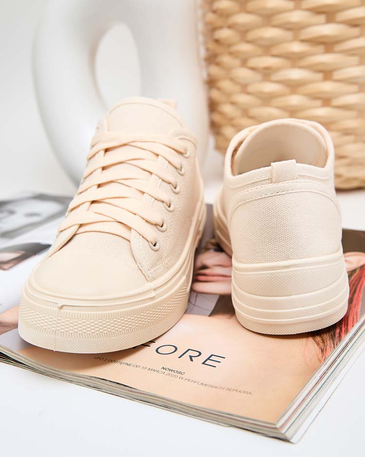 - Baskets classiques à lacets pour femme sur une semelle plate. La tige ainsi que la semelle intérieure sont en tissu. Superbe complément à vos tenues décontractées !